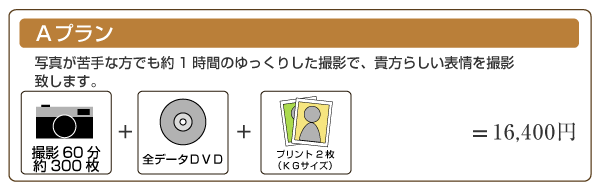 - 撮影枚数は約300枚以上。撮影データは全てDVDに入れて、約1週間後ご自宅に